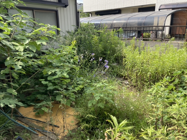 今回のお宅は、しばらく人が入っていなかったため、背丈ほどの雑草が一気に伸びていました。