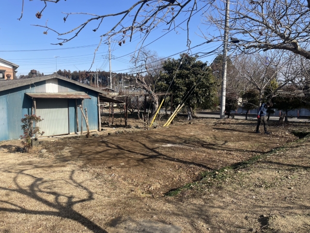 最後は、細かなビスや針金、留め具が地面に残りやすいので、目視と拾い集めを丁寧に。お客様がこの場所を今後どう使うかを伺い、歩きやすいように簡単な整地も行い、すっきりした状態でお引き渡しとなりました。